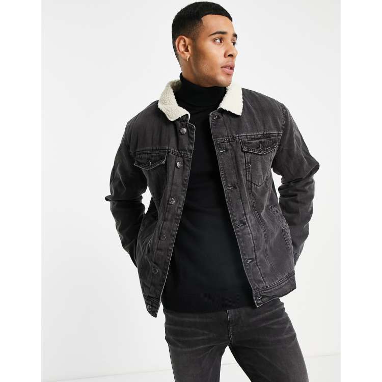 Product Item: French connection mens denim borg lined hot sale jacket black