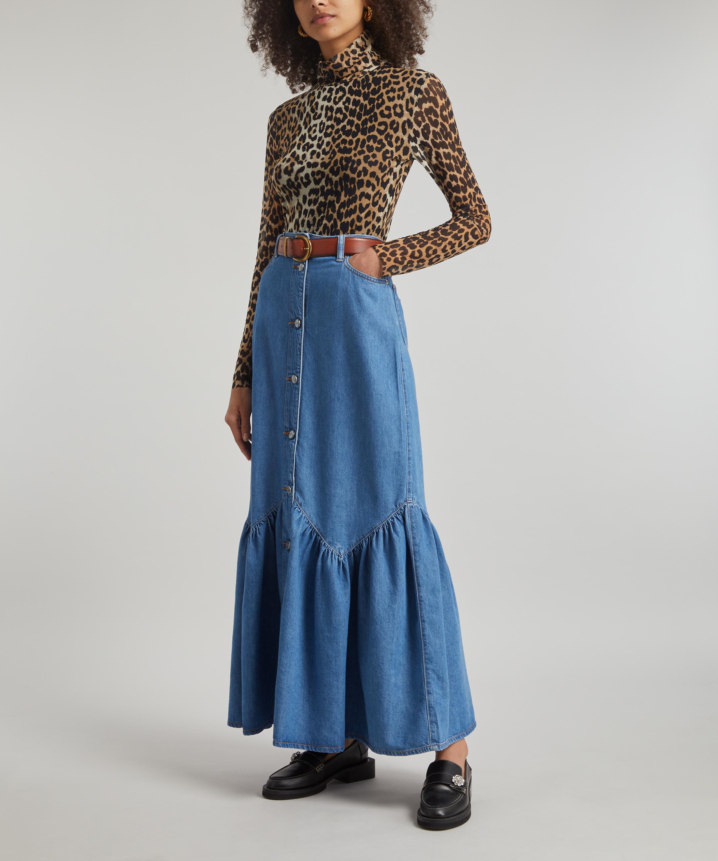 Ganni long hot sale denim skirt