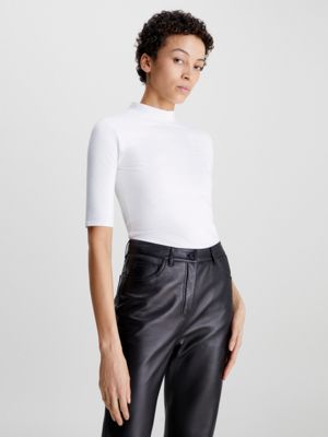 Mock neck hot sale white top