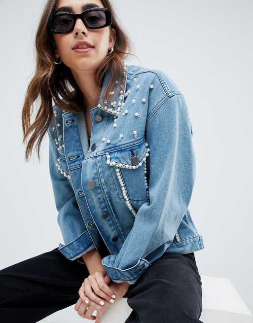 Pearl embellished hot sale denim jacket