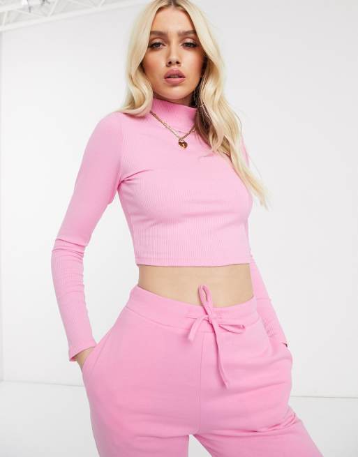Pink long hot sale sleeve turtleneck