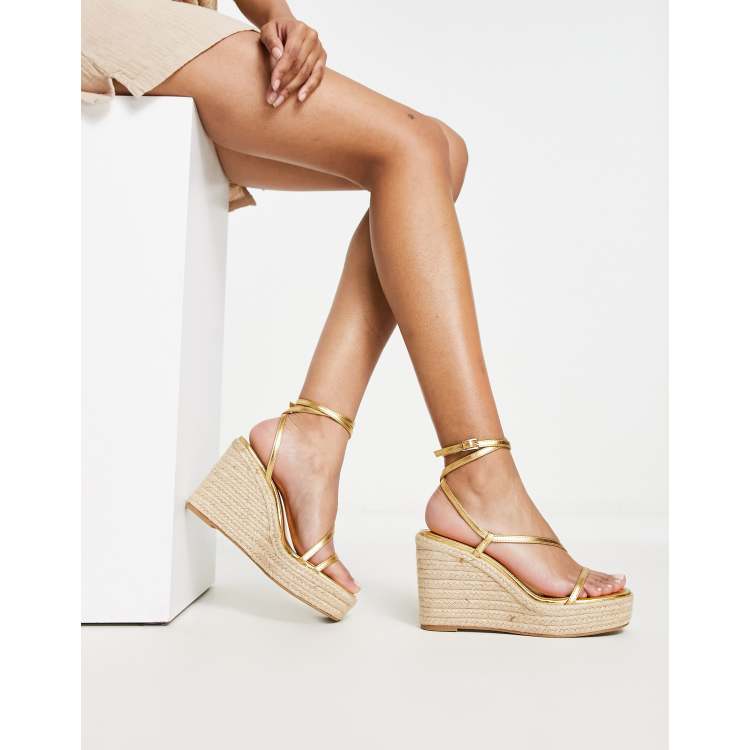 Strappy hot sale gold wedges