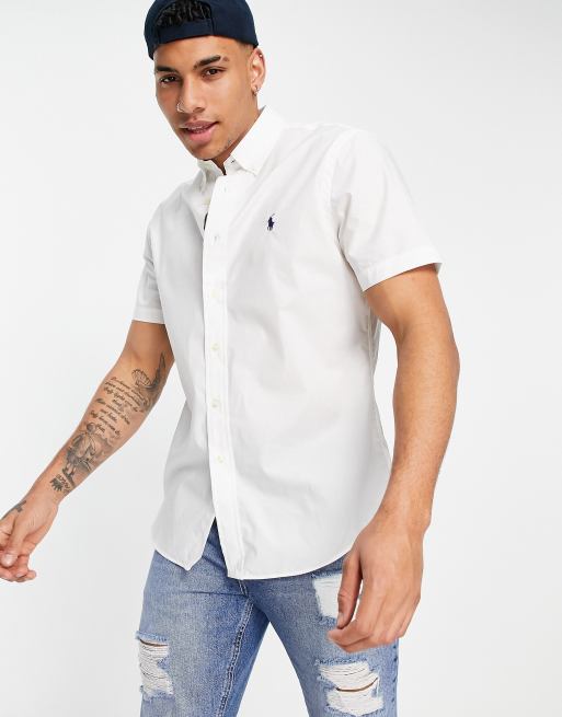 White button hot sale up shirt polo