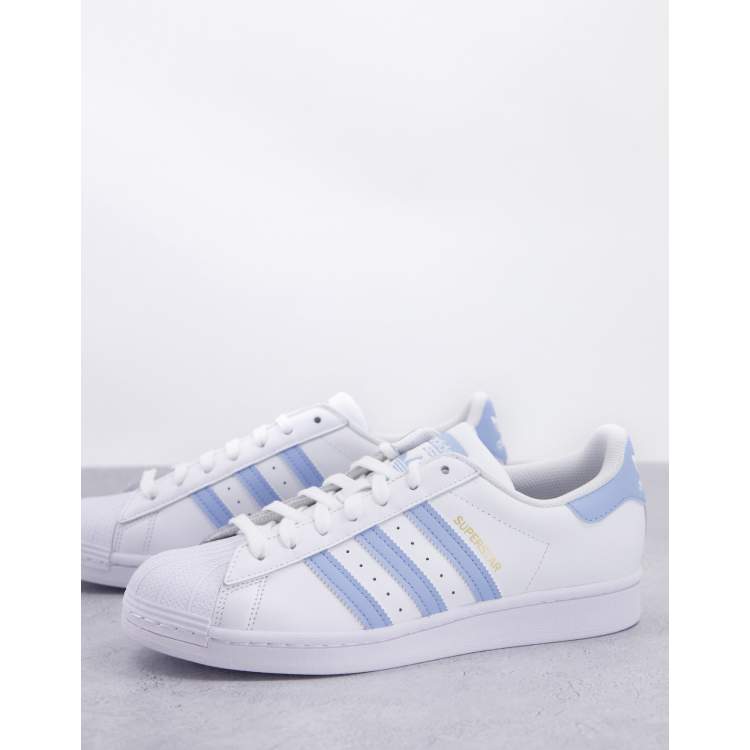 Zapatillas adidas blancas hot sale con lineas azules