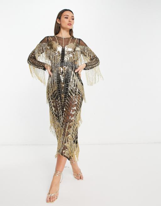 Asos edition starburst hot sale midi dress with fringe