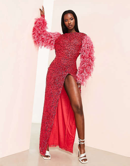 Asos red hot sale long sleeve dress